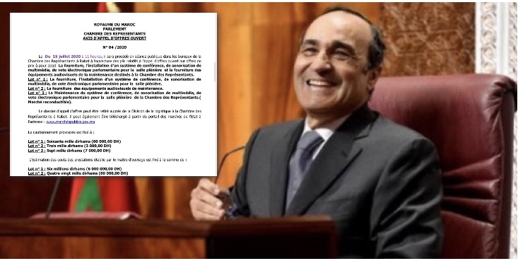 وبحسب الوثائق (التي تتوفر جريدة “أمَزان24” على نسخة منها) فإن المجلس أطلق الصفقة من أجل توريد وتركيب نظام مؤتمرات، الصوت المتعدد الوسائط، والتصويت الإلكتروني البرلماني لقاعة الجلسات العامة، وتوريد معدات الصيانة السمعية والبصرية لمجلس النواب.