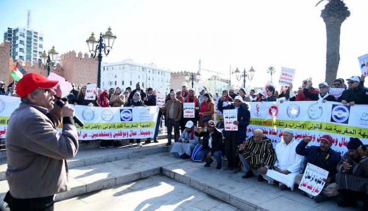 نظمت “الجبهة المغربية ضد قانون الإضراب والتقاعد(FMCLGR)، أمس الأحد وقفة احتجاجية، تعبيرا عن رفضها لقانون الإضراب.